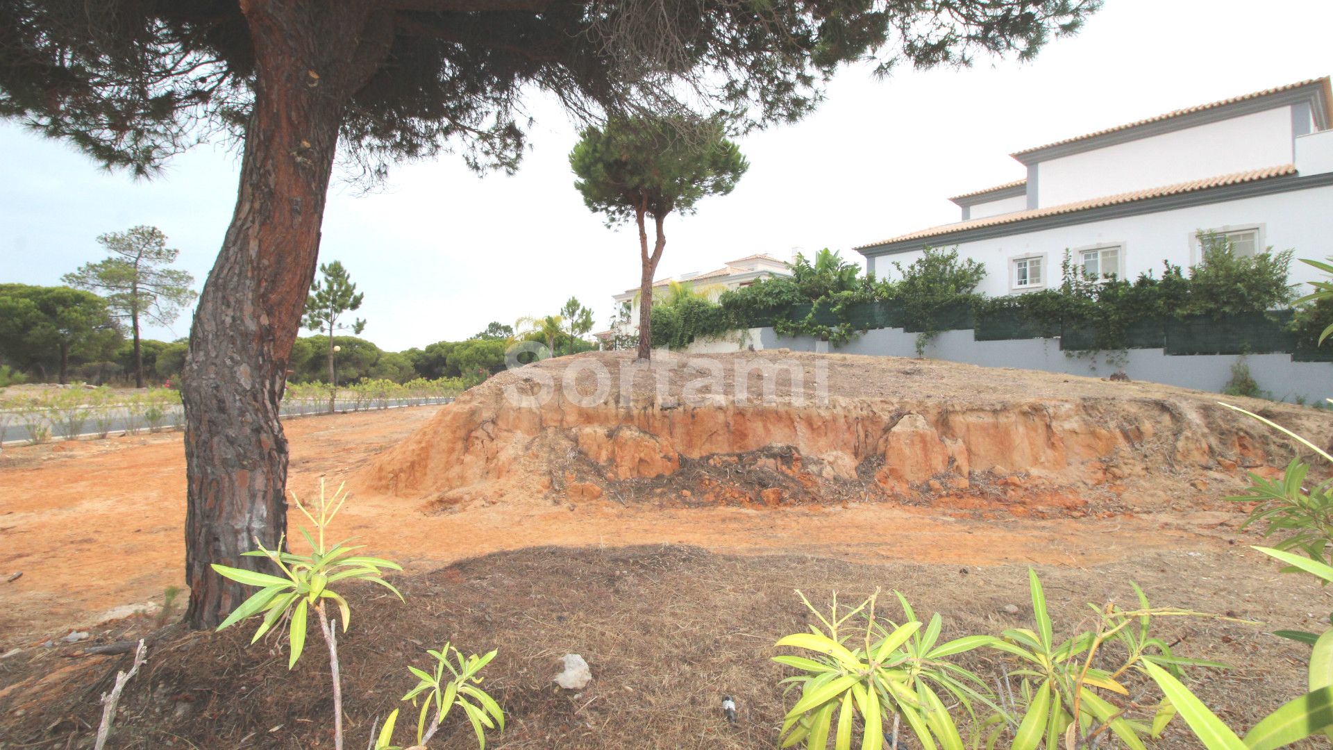 Corner plot with a slope where you can build a villa with a swimming pool, with a total plot of 1260 m2 and a living area of 520 m2 plus a basement of 315 m2.